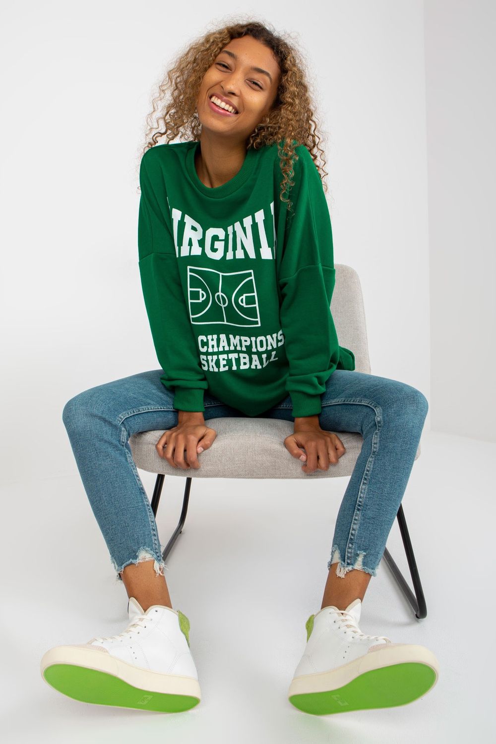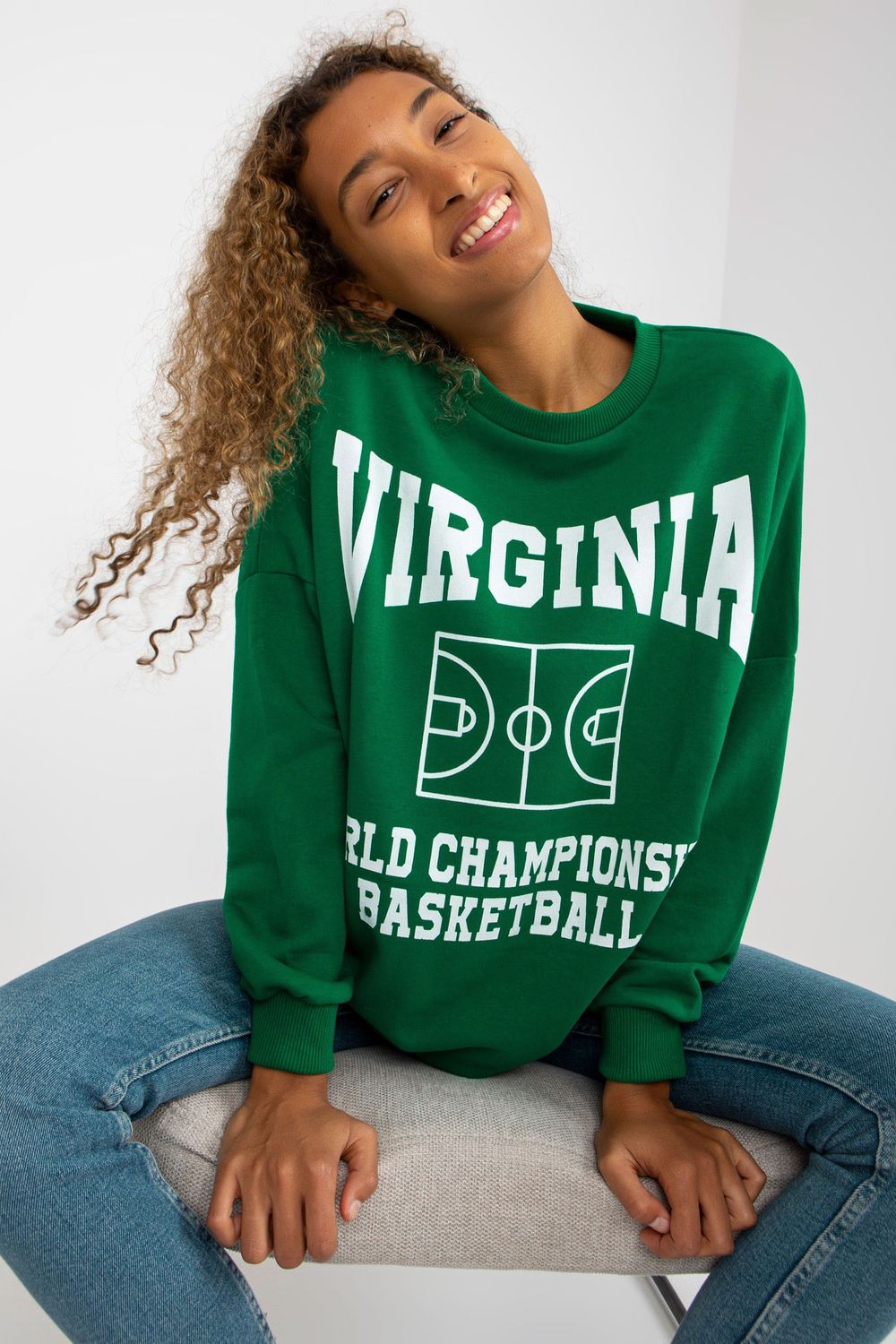 Felpa da donna a maniche lunghe, infilata sopra la testa. Stampa decorativa sul davanti. Tasche laterali per il trasporto.