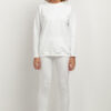Una semplice felpa in morbido tessuto a maglia è un’ottima opzione per le donne che apprezzano il comfort e l’affidabilità. Il taglio classico con dettagli come il delicato colletto, il bordo delle maniche e l’orlo a coste conferiscono alla felpa un’eleganza non convenzionale e la possibilità di abbinarla in molti modi. La felpa è realizzata con maglieria certificata OEKO-TEX Standard 100.
