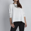 Maglione traforato dal taglio ampio con finiture a coste e un’ampia scollatura che cade sulle spalle. Femminile e seducente grazie alle intriganti trasparenze. Sembra grande sia da solo che come pezzo da stratificare.