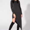 Abito a maglia con camino. Sui fianchi tasche nella cucitura. Fondo e manica lasciati grezzi.